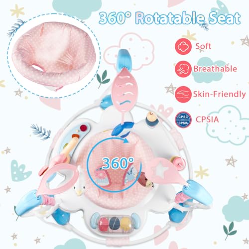 Baby Activity Center, Infant Jumpers and Bouncers with Music, Lights, Infant Toys, 360°Rotating Seat, 3 Adjustable Heights, Baby Play and Learning Center for 6+ Months