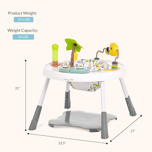 Say hello to the Dream On Me Curio Sit N Seek Baby Activity Center – the perfect choice for Busy Parents and Active Babies! With a 2-in-1 design that grows with baby from an Activity Center to a Play Table, 3 height level adjustable positions and 360 degree rotatable seat, there is fun in all directions & easy access to all the toys and activities. The Dream On Me Curio Sit N Seek Activity Center for baby comes with 3 fun, detachable toys and in-built music. Made with a soft & comfortable fabric and a lightweight & sturdy base, the Dream On Me Curio Sit N Seek Activity Center is a must-have. It comes in 3 curious finishes – Grey, Mint, and Lime. Product dimensions are 17” L X 22.5” W X 21” H, with a weight of 10.1 Lbs. This activity center for baby has a maximum weight capacity of 24 Lbs and is suitable for children between 6-24 months.
