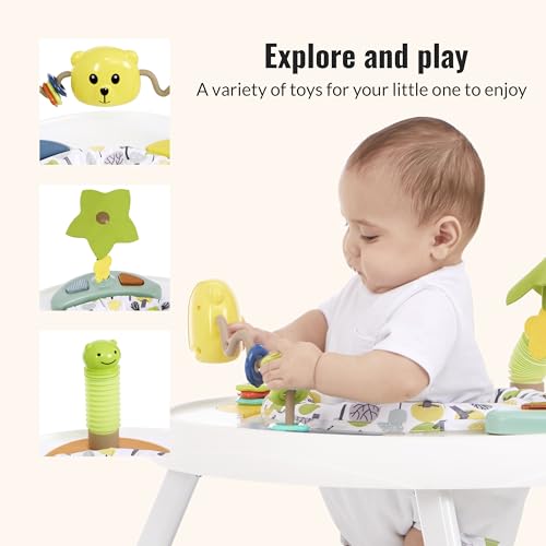 Dream On Me Curio Sit N Seek Baby Activity Center in Lime, 2 in 1 Activity Center and Play Table with 3 Detachable Toys and Music, 3 Level Height Adjustable Positions Activity Center for Baby