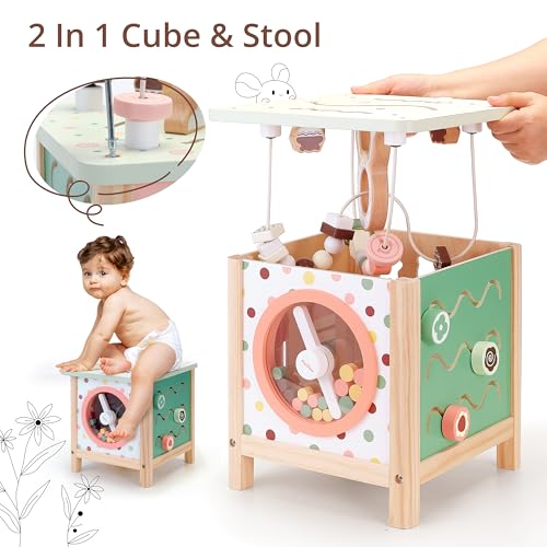 PairPear Wooden Activity Cube Montessori Toys Wooden Play Cube Activity Center Baby Busy Board Multifunctional Early Educational Development Toys Sensory Gifts for Toddlers Girls Boys 1 2 3 Year Old