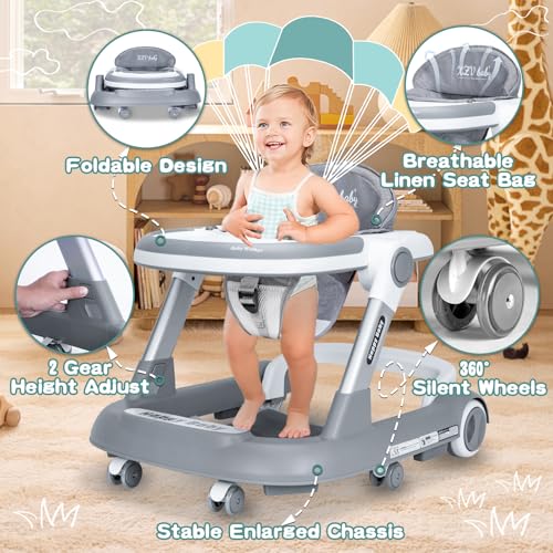 Baby Walker with Wheels 4 in 1 Foldable Activity Center with Mute Wheels Adjustable Heights Anti-Fall Activity Center for Boys Girls Safe Infant Toddler Walker with Footrest for 6-24 Months