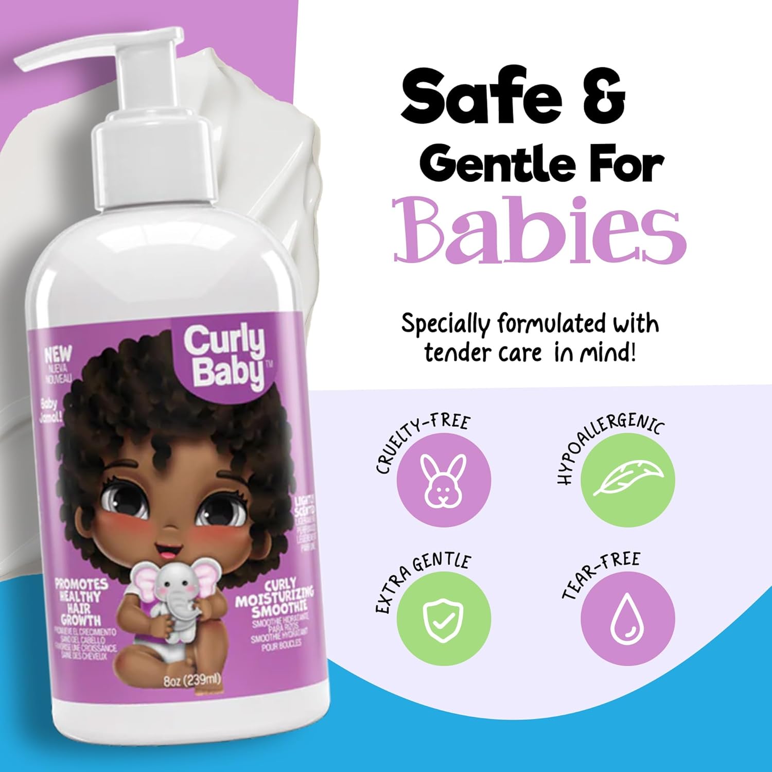 SAFE AND GENTLE FOR BABIES: CurlyBaby products are cruelty-free, hypoallergenic, and dermatologist-tested, ensuring the utmost care for your baby’s sensitive scalp and hair. The Curly Moisturizing Smoothie is free from harsh chemicals, making it a trusted choice for nurturing baby curls.