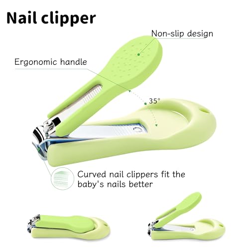 Baby Nail Clippers Kit Baby Grooming Set with Nail Clippers, Scissors, Nail File & Tweezers Baby Care Kit Fingernail Cutter for Baby,Newborn,Infant,Toddler,Kid(Green)