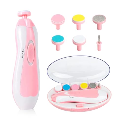 Baby Nail File Clippers Electric: Baby Nail Trimmer Electric Kit Fingernails Toes Care Manicure 6-in-1 Set with LED Light Safe for Newborn Kids and Adult Pin