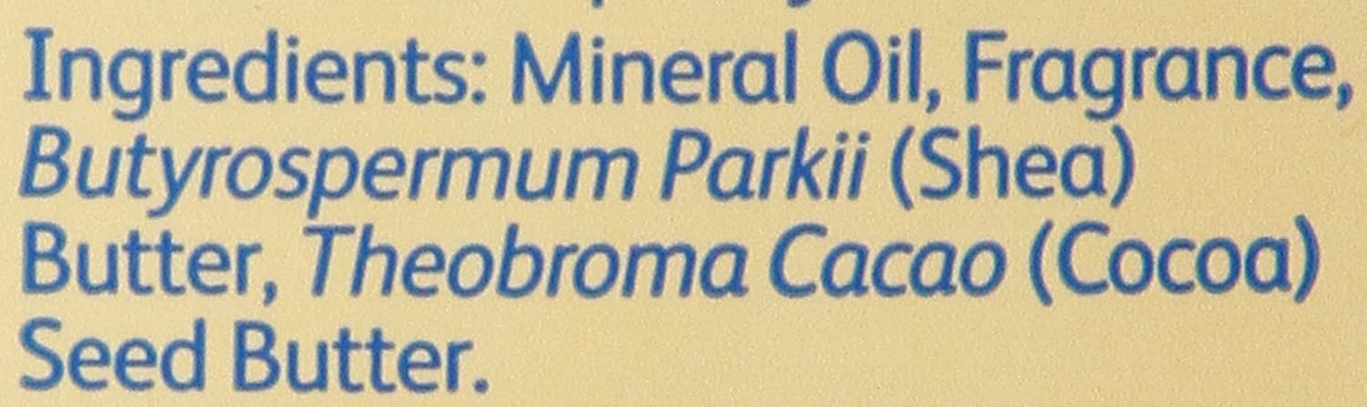 20-fluid ounce bottle of pure baby oil, enriched with shea & cocoa butter, formulated to help moisturize babies’ delicate skin, and protect skin from dryness, great for relieving dry skin or rough patches
