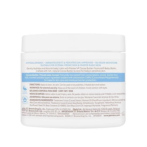 Palmer’s Baby Balm, Cocoa Butter Formula Hydrating Baby Cream, 3.5 Oz, Nourishing Dry Skin, Eczema, Cradle Cap & Diaper Rash Cream, Hypoallergenic, 48Hr Moisture, Dermatologist Tested Essentials