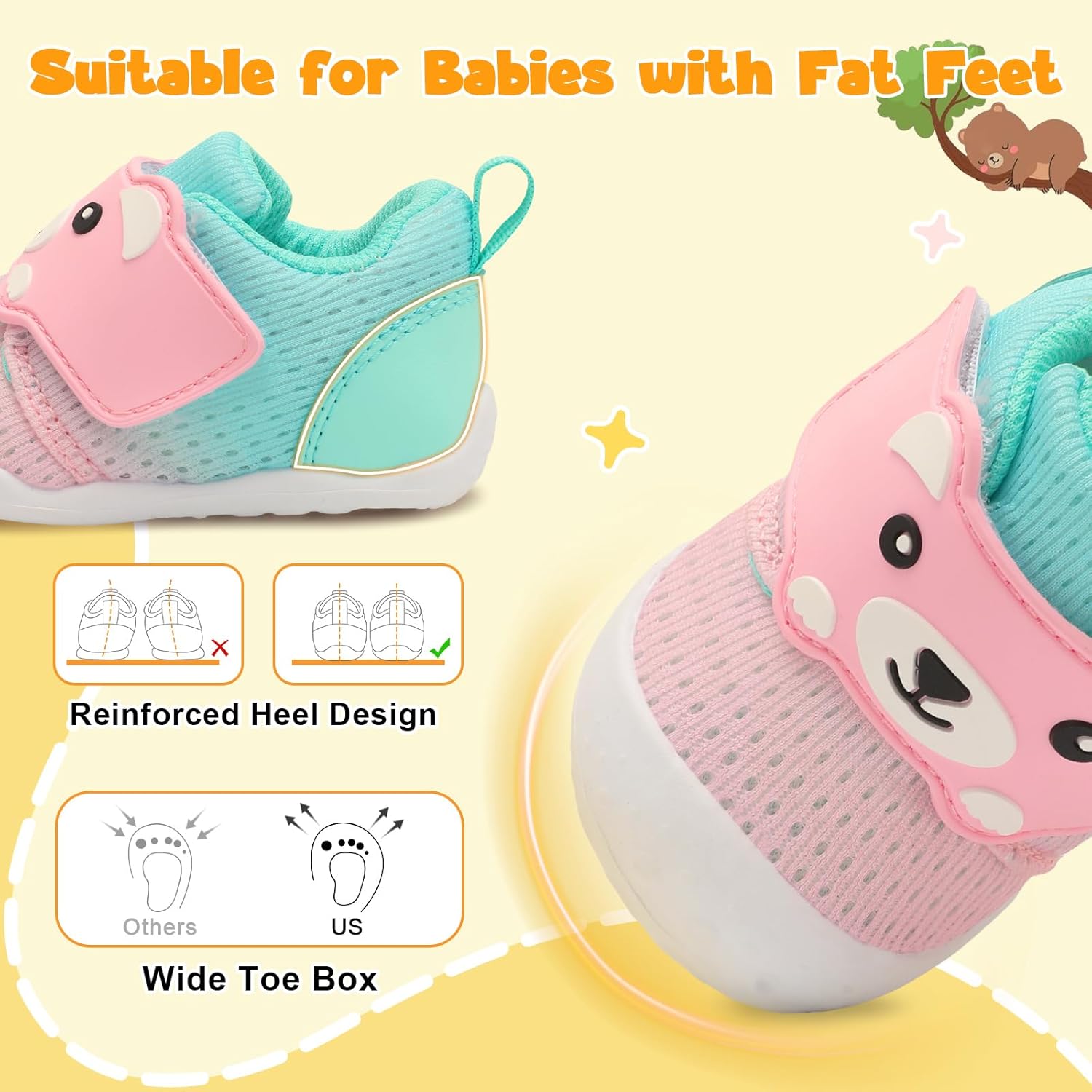 FEETCITY Baby Walking Shoes Wide Baby Shoes Boys Girls Infant Sneakers Crib Shoes Breathable Toddler Barefoot Shoes Slip On Shoes