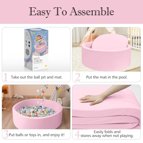 Ball Pit for Toddlers, 35.4″x 11.8″ Foam Ball Pits, Indoor Soft Round Baby Playpen for Children, Ideal Gift for Toddlers, Pink, (Balls not Included)