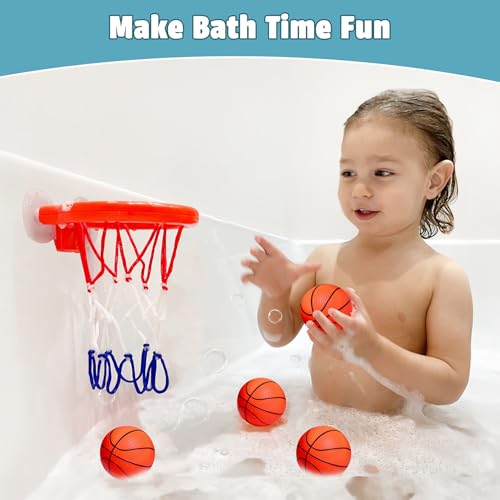Bath Toys, Bathtub Basketball Hoop for Toddlers Kids, Boys and Girls with 4 Soft Balls, Mold Free & Strong Suction Cup, Bathtub Shooting Game & Fun Toddlers Bath Toys for Boys or Girls