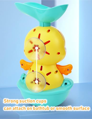 Making Fun in Bathtime: The bathtub toy playset provides endless fun for toddlers ages 1-3 and kids ages 4-8. Babies can play water games with their imagination. Playing with water by spoons, floating bath boats, stacking cups, duck waterfall bath toys. Rotating eyes, spinning gears, opening and shutting mouth with squirting water, moving up and down hands, flowing water like a waterfall, cups which leaking water in different hole patterns. These make bathtime full of fun and make babies love to take a bath.