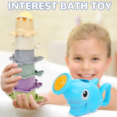 【 Fun Bath Cups 】The 7 sea animals baby bath cups come in various colors and shapes, ideal for pouring, stacking, and exploring. These cups stimulate creative play and teach cause and effect in a hands-on manner
