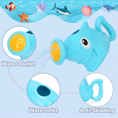 【 Bath Toy Set 】The bath toy set includes 6 colorful toy boats, 7 playful baby bath cups, and 1 adorable shark shower head, perfect for making bath time fun and entertaining