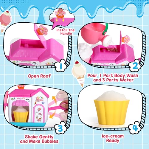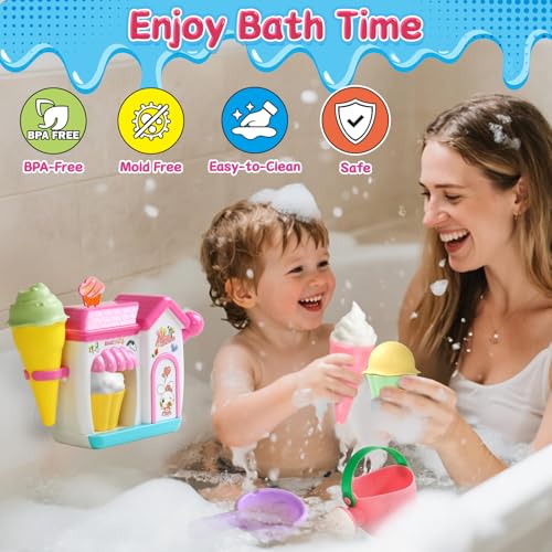 Bath Toys for Kids Ages 4-8 Ice Cream Bath Toys for Kids Ages 3-5 Bathtub Ice Cream Foam Maker Bubble Pretend Cake Play Set for Toddlers 2-4 5 6 7 8 Year Old Girls Boys Holiday Birthday Gifts
