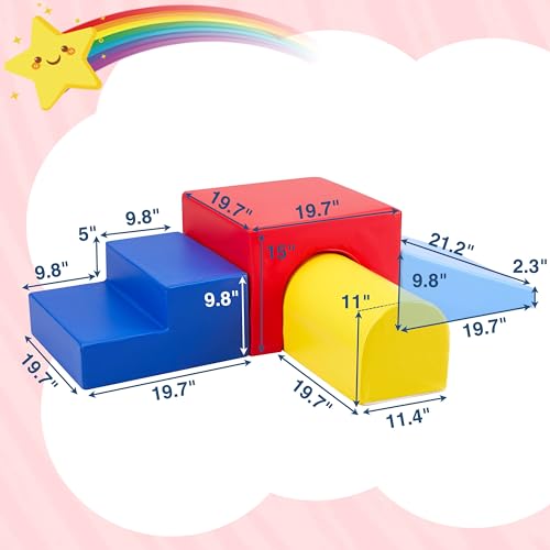 【Exercise and Development with Colorful Stimulation】- Stimulate your child’s imagination and promote developmental milestones with the vibrant and colorful surfaces and shapes of the climb toys. Designed to enhance gross motor skills, coordination, and color recognition, this climbing set allows babies and toddlers to climb, crawl, and glide on four distinct foam shapes. Encourage free movement and active play, fostering a healthy and developmental play experience.