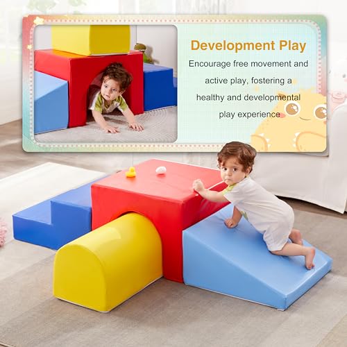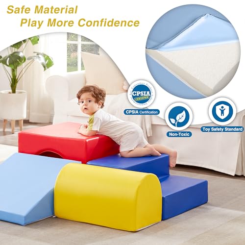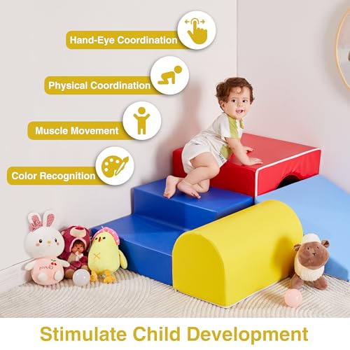 Kids Climb & Crawl Sets, 4-Piece Soft Foam Block Activity Play Structures Set for Baby Infant, Indoor Climber for Child Development, Color Coordination, Motor Skills (Multicolor-a)