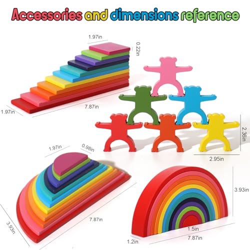 OPEN ENDED TOYS:Unlike The Traditional Rainbow Blocks, We Combine 12 Rainbow Blocks, 11 Semi-Circular Blocks, 11 Rectangular Blocks And 6 Man-Shaped Blocks Into A Set That Offers Unusual Playability And Possibility.Children Can Stack And Build Different Play Scenes According To Their Needs, Or They Can Use It As A Balancing Play Toy.