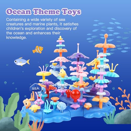 96PCS Ocean Adventures DIY Building Stacking Toys Set,Educational STEM Toy Gift for Kids with Organiser Box,Fun Cognitive Learning Toys for Girls/Boys,Toddler Beach Toy