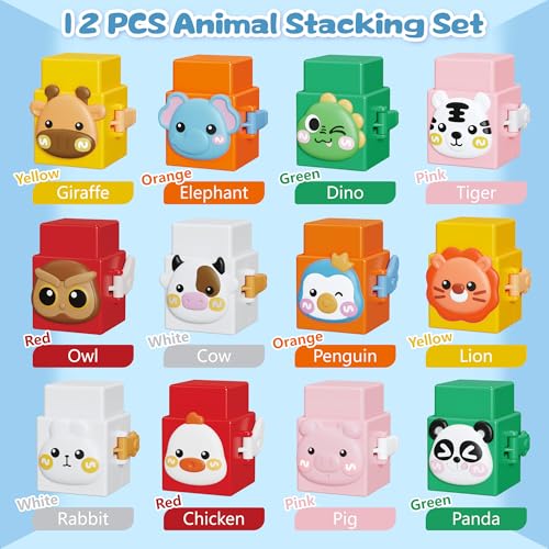 iPlay, iLearn Baby Stacking Toy, Toddler Animal Stacking Blocks Set, Infant Pressable Nesting Stackable Cubes, Montessori Sensory Learning Birthday Gifts for 18 24 Month 2 3 4 Year Old Boys Girls Kids