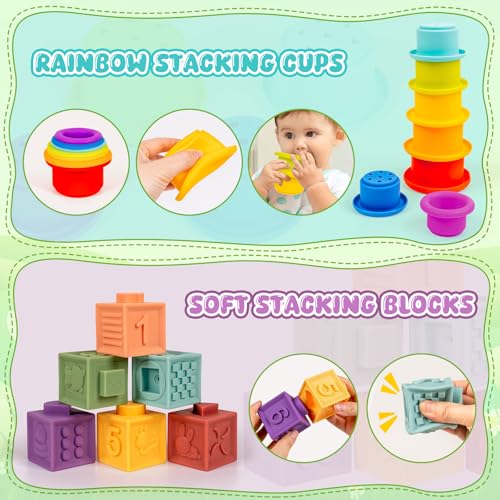 SOFT STACKING BLOCKS, CUPS, RINGS TOYS: Colorful stacking toys, blocks, cups, rings for toddlers 6-12 Months are great for learning colors, shapes, textures, counting, visual development and other abilities. Different ages can get different training, like color and object recognition, stacking, matching, memory, and calculation ability. Fully exercise comprehensive ability.