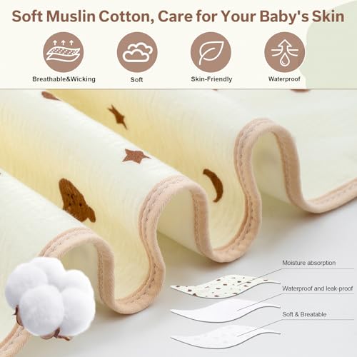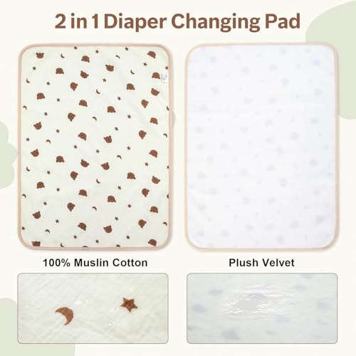 Muslin Diaper Changing Pad, Waterproof Diaper Change Liners for Baby, Leakproof Quick Drying Pads, Portable Diaper Changing Mat for Travel, Reusable Incontinence Underpads Protectors