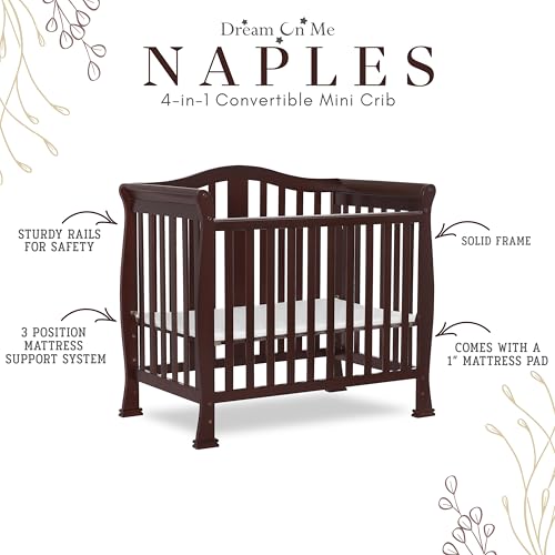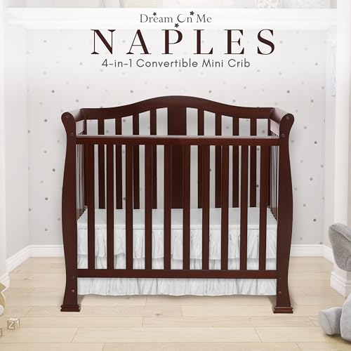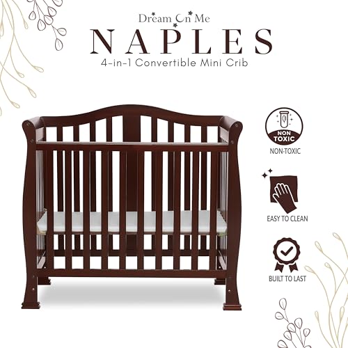 Dream On Me Addison 4-in-1 Convertible Mini Crib in Espresso, Greenguard Gold Certified, Non-Toxic Finishes, Built of New Zealand Pinewood, Comes with 1” Mattress Pad