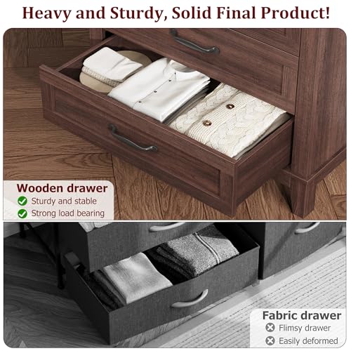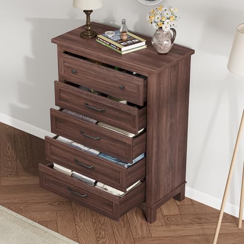 GarveeHome 5 Dresser for Bedroom, 41.3″ Tall Vertical Drawer Dresser with Large Storage, Freestanding Wooden Closet Chest for Bedroom, Living Room, Walunt