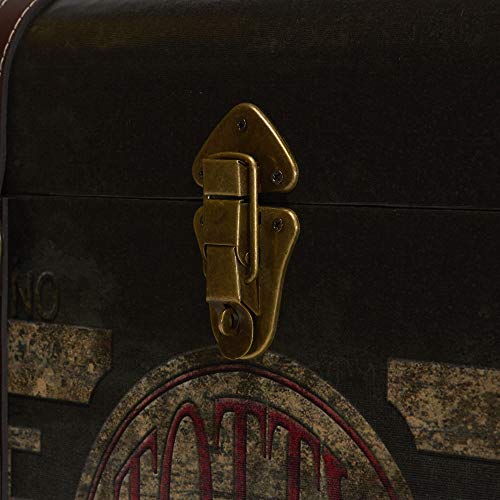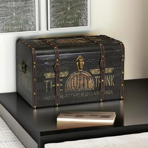 Household Essentials Large Decorative Trunk, Vintage Decoupage, Metal Accents with Leather Strapping, Strong MDF Frame, Clasps Shut, Green and Black