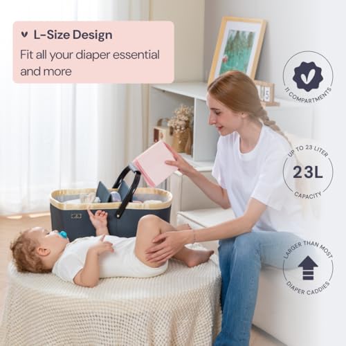 BabbleRoo Diaper Caddy: Large Capacity Diaper Organizer Basket, Perfect for Storing Baby Wipes, Diapers & Baby Essentials. Spacious, Convenient for Parents of Newborn Babies – Black