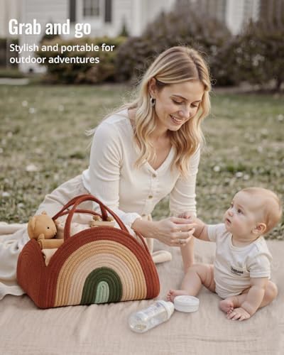 Blissful Diary Baby Diaper Caddy Organizer, Cotton Rope Diaper Caddy Basket, Large Storage Basket, Gift for Baby Shower, Newborn Essentials, Rustic Rainbow