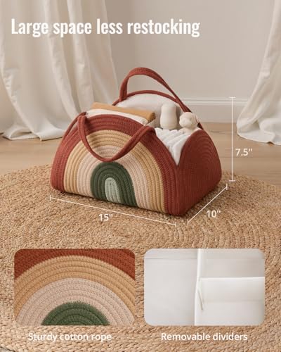 Sturdy Diaper Caddy: This nursery storage woven basket features strong cotton rope that maintains its shape for easy organization and nice look. With handles and removable dividers, you can carry it easily, organize flexibly, and keep it neat