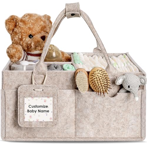 GEMII Diaper Caddy Organizer – Large Baby Caddy Organizer with Handle for Newborn Essentials Boy or Girl (Oatmeal, Large)
