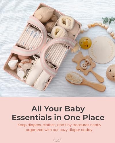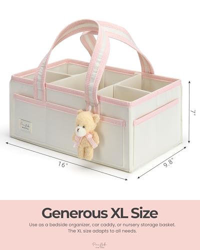 PeraBella XL Diaper Caddy Organizer With Handle, Baby Shower Gifts Basket Bag, Registry Search Must Haves Items, Newborn Girl Boy Nursery Storage Organizer, Baby Bag Essentials, Car Diaper Caddy Cart
