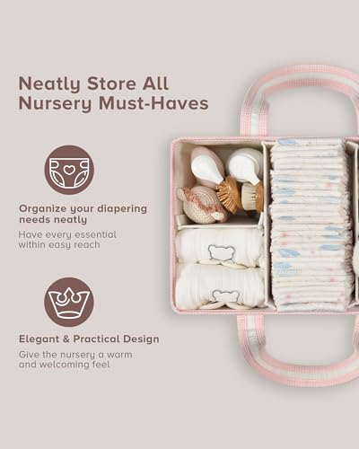 LIGHTWEIGHT & MULTI-PURPOSE: This baby diaper caddy organizer with handle is perfect for nursery storage, car caddy, or bedside diaper changing station. Store diapers, wipes, breast pump, baby bath items, or toys—ideal for travel and everyday use as baby room organizer and storage