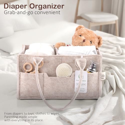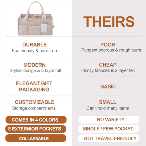 Premium Quality with No Odor: The Baby Diaper Caddy Crafted with a custom 5-layer thickened felt, our product features a high-quality, odor-free, die-cut edges that are soft and free from burrs, ensuring a safe and comfortable experience, unlike laser-cut alternatives that may have sharp, hand-irritating burrs.