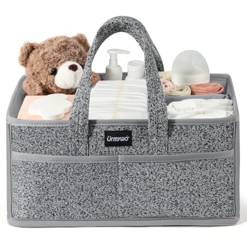 URMYWO Diaper Caddy Organizer – Portable Baby Diaper Caddy with Handle, Large Nursery Organizer Storage Basket for Newborn Essentials, Baby Registry Must Have Shower Gift for Home and Car Travel
