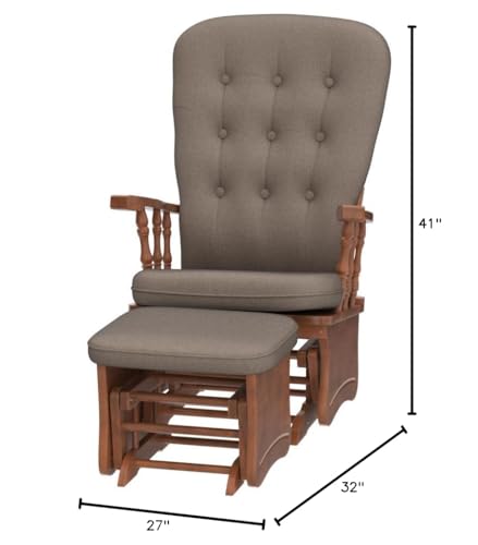 Anti-Pinch Hand Glider Chair for Nursery with Ottoman, Resistant Rubber Wood Glider Rocking Chair Sets for Nursing, Relaxing, Living Room, Bedroom, Antique Brown