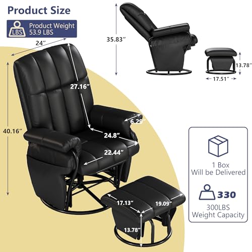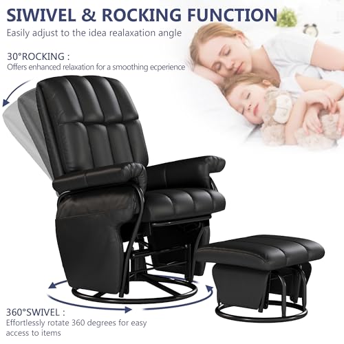 AODAILIHB Swivel Glider Recliner with Ottoman, 360 Rocking Chair with Foot Rest Recliner Chair Indoor Rocking Chair with Side Pockets Nursery Chairs for Living Room, Bedroom, Office (Black)