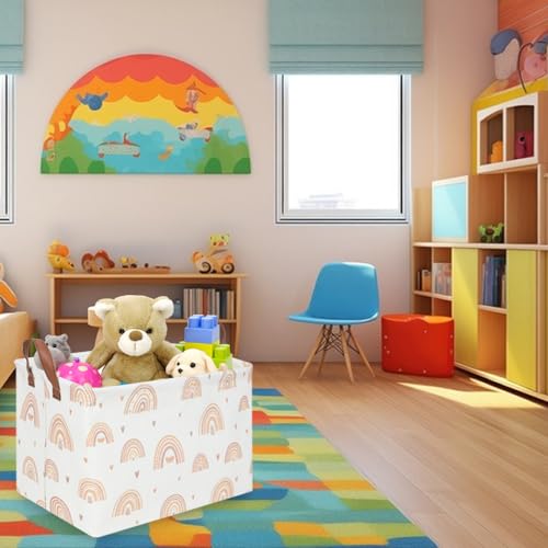 Boho Rainbow Baskets Rectangular,girl basket,Waterproof foldable canvas laundry basket,Nursery hamper,Room Decor,Shelf Basket(Rainbows)