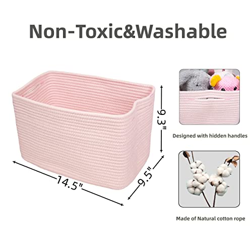 Cotton Rope storage Basket Bins Woven Basket for Organizing Shelves Rectangle Decorative Baskets For storage Clothes Toys Books Towels Square Wicker Nursery basket organizer 3 pack light pink