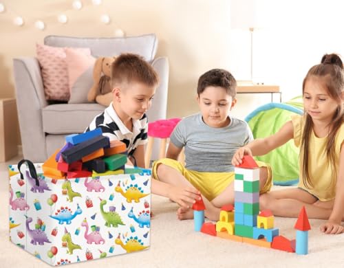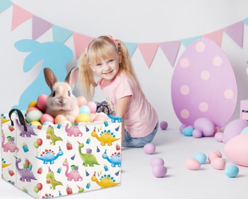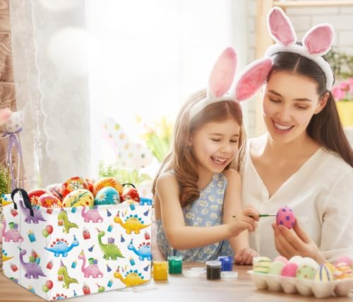 HIYAGON Rectangular Dinosaur Basket Kids Baby Nursery Storage Basket for Boys Bunny Room Decor Cute Toy Storage Organizer Bins Bedroom(Gift Dinosaur)