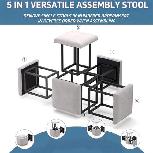 5-in-1 Nesting Magic: Transform in seconds—use as 1 single stool, 2 side-by-side seats, or stack all 5 into a compact cube for storage. Ideal for small spaces (apartments, studios) or hosting guests.