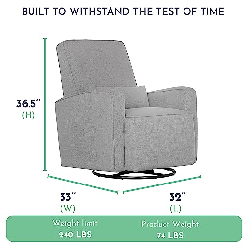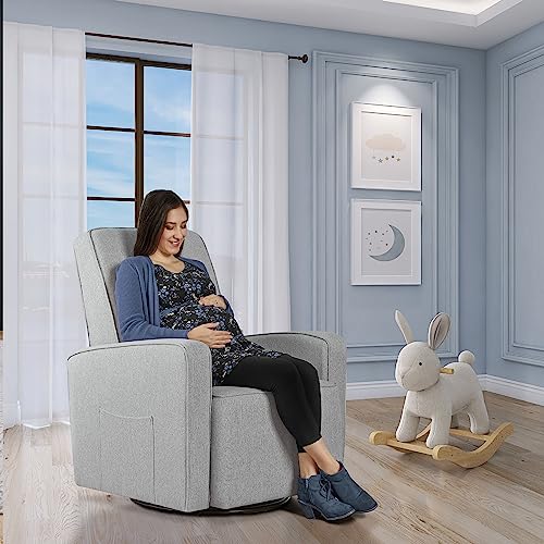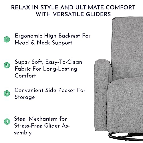 Evolur Holland Upholstered Plush Seating Glider Swivel, Glider Chair for Nursery in Light Grey, Modern Nursery Glider, Tool-Free Assembly, Easy to Clean, Environmentally Conscious Glider