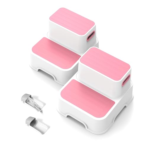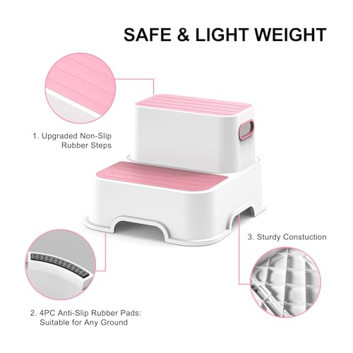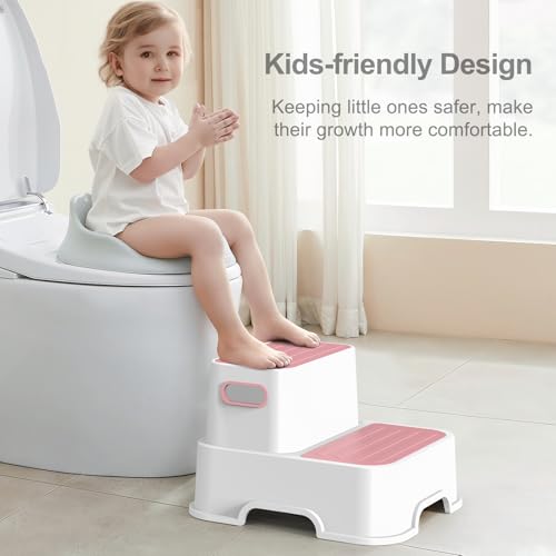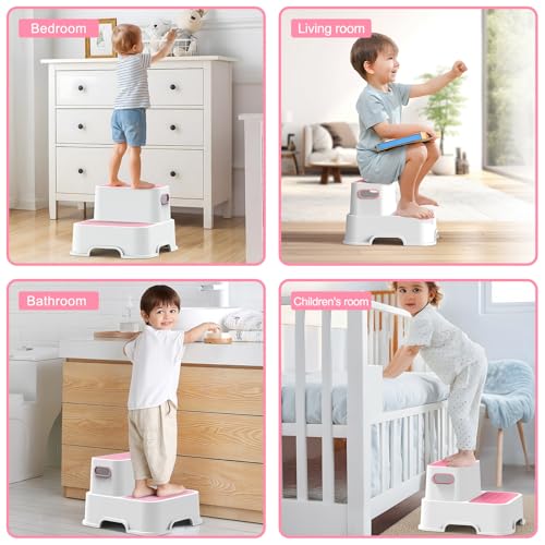 2 Step Stools for Kids, Multifunctional Toilet Potty Stool for Kids,Toddler Step Stool for Bathroom Sink,No-Slip Double up Stepping for Toddlers Bathroom,Toilet Potty Training,2 Packs,Pink