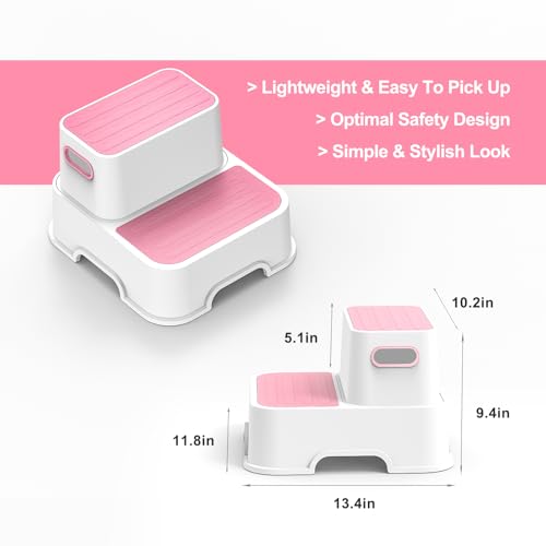 Dayacoco 2 Step Stools for Kids, Multifunctional Toilet Potty Stool for Kids,Toddler Step Stool for Bathroom Sink,No-Slip Double up Stepping for Toddlers Bathroom,Toilet Potty Training,2 Packs,Pink