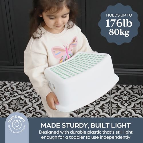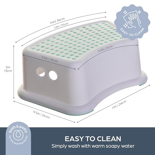 𝐀𝐧𝐭𝐢-𝐒𝐥𝐢𝐩 𝐃𝐞𝐬𝐢𝐠𝐧: This footstool was designed with growing toddlers in mind; Dreambaby Step Stool features 117 rubber dots for maximum traction and non-slip base to ensure the stool stays in place while in use. Perfect for tiny feet making big steps.