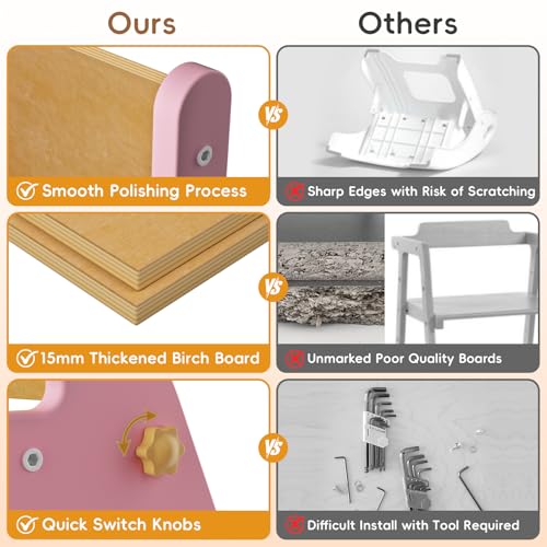 [EFFECTIVELY CULTIVATE INDEPENDENCE] Free your sore back from long carrying from now on. Whether in the kitchen, bathroom or study, the kids step stools can meet all the use needs of babies, making them feel valued and involved in every scene, while enhancing their confidence and sense of achievement.