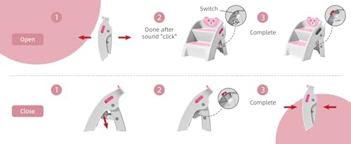 Stable and Anti-Slip Features: Constructed with a robust “A” frame and equipped with wide, non-slip steps, this stool is safe for kids aged 6 months to 3 years. The easy-to-grip handles and anti-skid pads prevent slips and falls, providing a secure platform for your child to stand on.