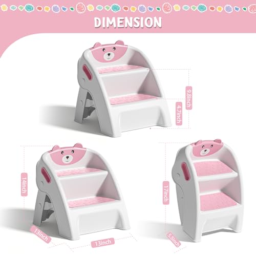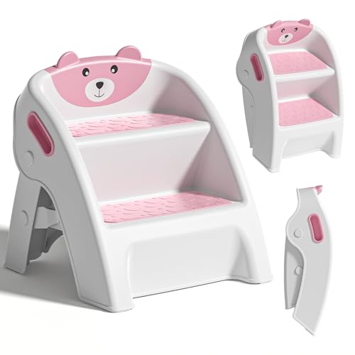 TPN Toddler Step Stool for Bathroom Sink and Potty Training Durable Anti-Slip,Anti-Tip A-Frame,10-Second Assembly, 2-Step Potty Stool with Wide Steps (Pink)