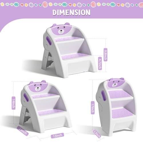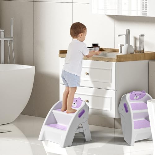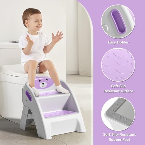 TPN Toddler Step Stool for Bathroom Sink and Potty Training Durable Anti-Slip,Anti-Tip A-Frame,10-Second Assembly, 2-Step Potty Stool with Wide Steps (Purple)