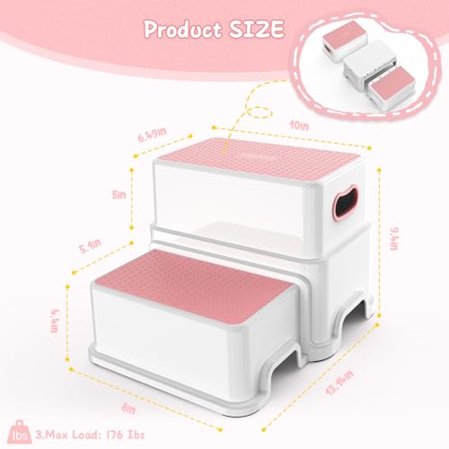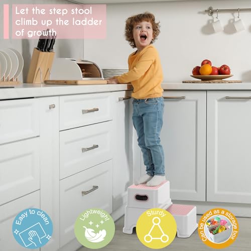 Victostar 2 Step Stool for Kids, Anti-Slip Sturdy Toddler Two Step Stool for Toilet Potty Training, Bathroom,Kitchen (Pink)